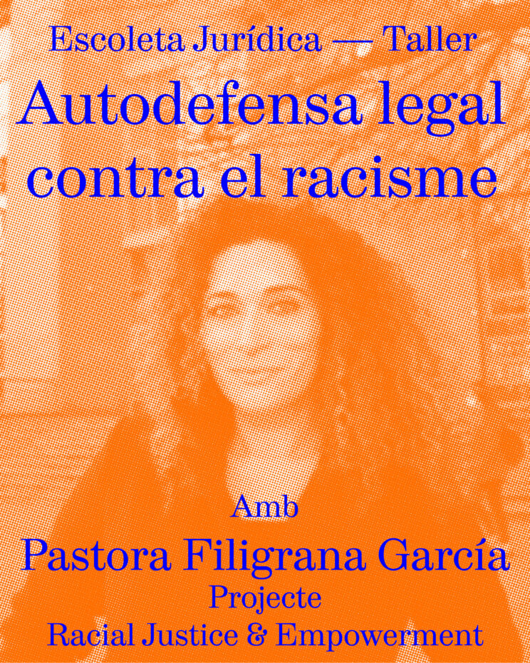 El divendres 17 d’octubre tindrem una sessió molt especial de l’Escoleta Jurídica Des dels blocs. Ens acompanyarà la Pastora Filigrana, advocada gitana i referent de l’antiracisme, en una formació que té com a objectiu facilitar la denúncia legal d’actes de vulneració del dret a la igualtat de tracte i no discriminació per motius racistes i xenòfobs a tots els àmbits: el de la fina, l’habitatge, la comunitat educativa, la sanitat, l’espai públic o el lleure nocturn, entre d’altres.