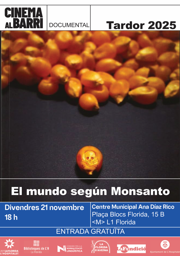 El viernes 21 de noviembre a las 18 h proyectaremos en el Centre Municipal Ana Díaz Rico el documental El mundo según Monsanto (VO, 2008), dirigido por Marie-Monique Robin.