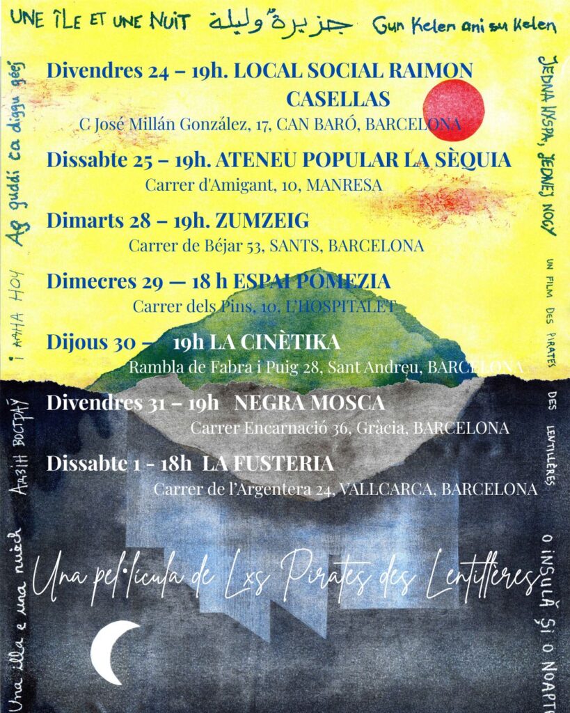 Proyectamos Une île et une nuit, una película grabada colectivamente en 16mm en el Barrio Libre de Lentillères (Dijon), una comunidad que desde hace quince años ocupa unos terrenos agrícolas para impedir un “ecoquartier” y construir otra manera de vivir, basada en la autogestión y el cultivo comunitario.